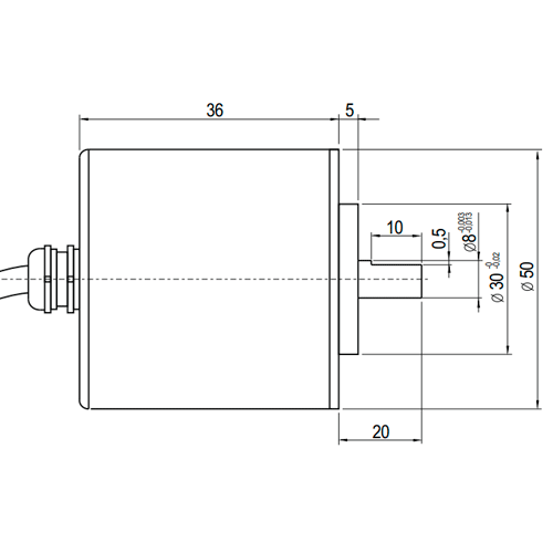 Инкрементальный энкодер INNOCONT D=50мм, выступающий вал 8мм, 500 имп/об, 24VDC, выход HTL, IP54, -20…+80°C, аксиальный кабель 2м