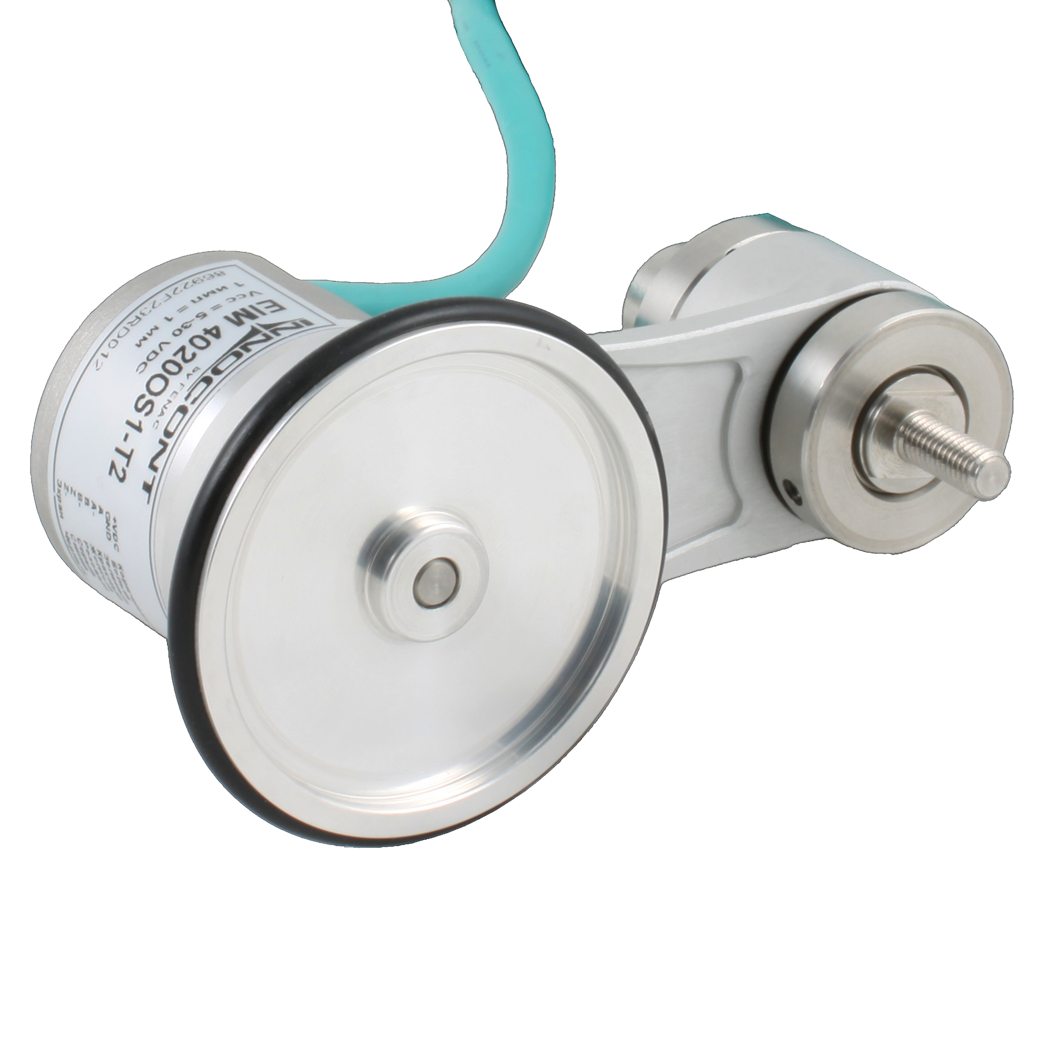 Инкрементальный энкодер INNOCONT D=40мм с мерным колесом L=200мм, контактная поверхность — резина, профиль гладкий, 1имп/1мм, 5…30VDC, выход HTL, IP64, -20…+85°C, тангенциальный кабель 2м