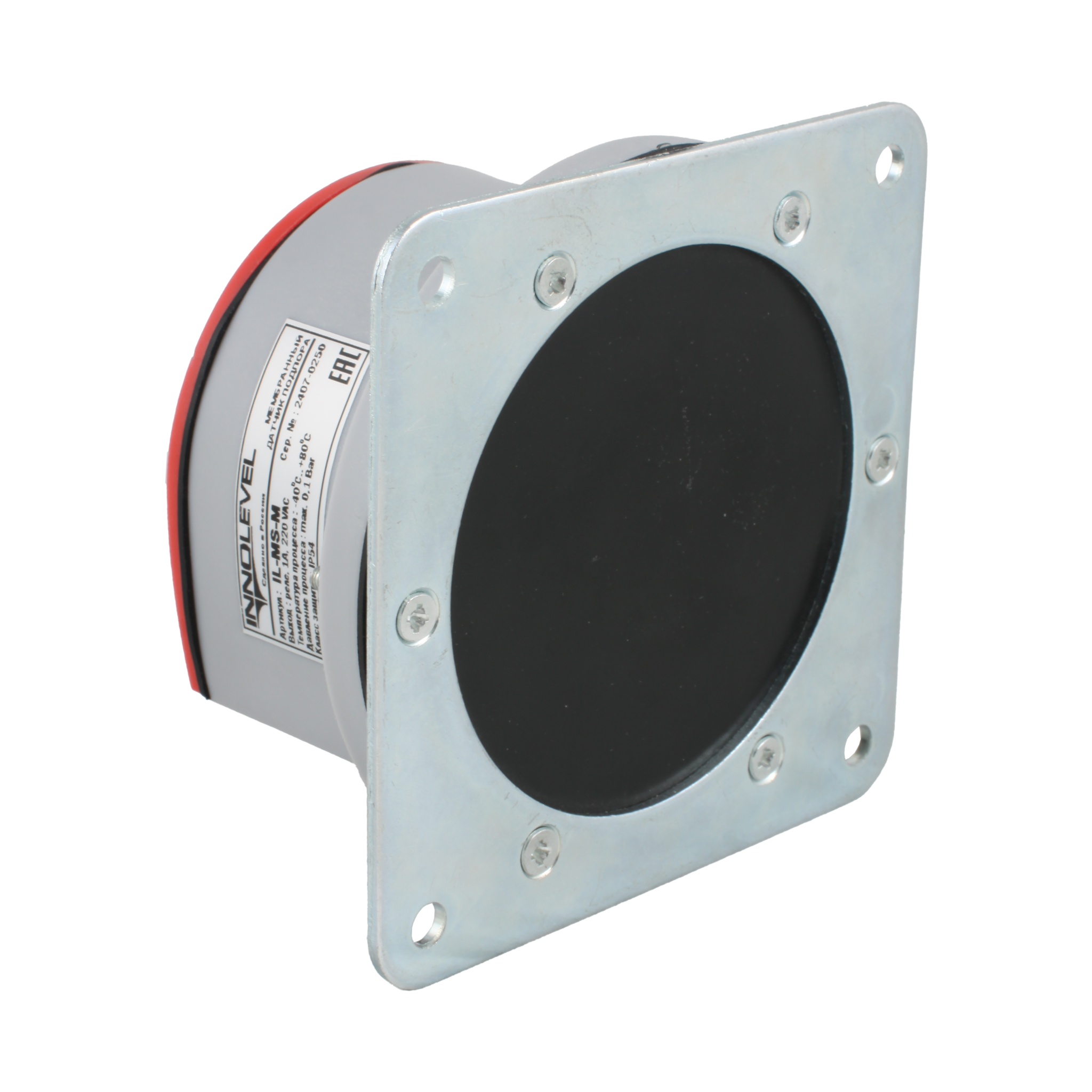 Мембранный датчик подпора для сыпучих материалов INNOLEVEL в пластиковом корпусе (аналог СУМ-1), -40 +80 С, IP54, чувств. от 100 г/л; фланец 114×114 мм, мембрана- NBR, выход- реле SPDT