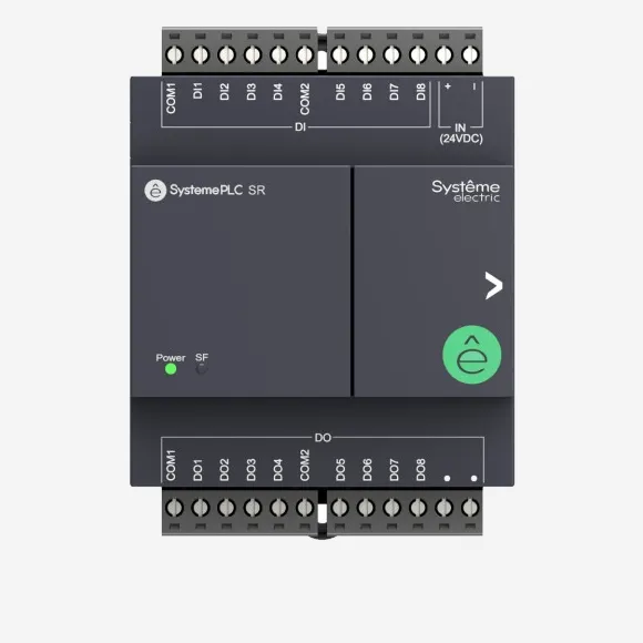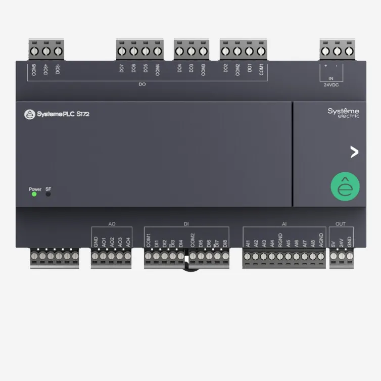 SM172PS11BDR | ПЛК S172; 24 VDC; дисплей; 28 IO: 8 DI, 8 DO (реле), 8 AI, 4 AO; 2xRS485, 1xRJ45, Systeme Electric