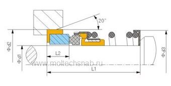 Торцевое уплотнение BSBIA/20 Возможные пары трения: CAR/CER — графит по керамике, CAR/SIC — графит по карбиду кремния SIC/SIC — карбид