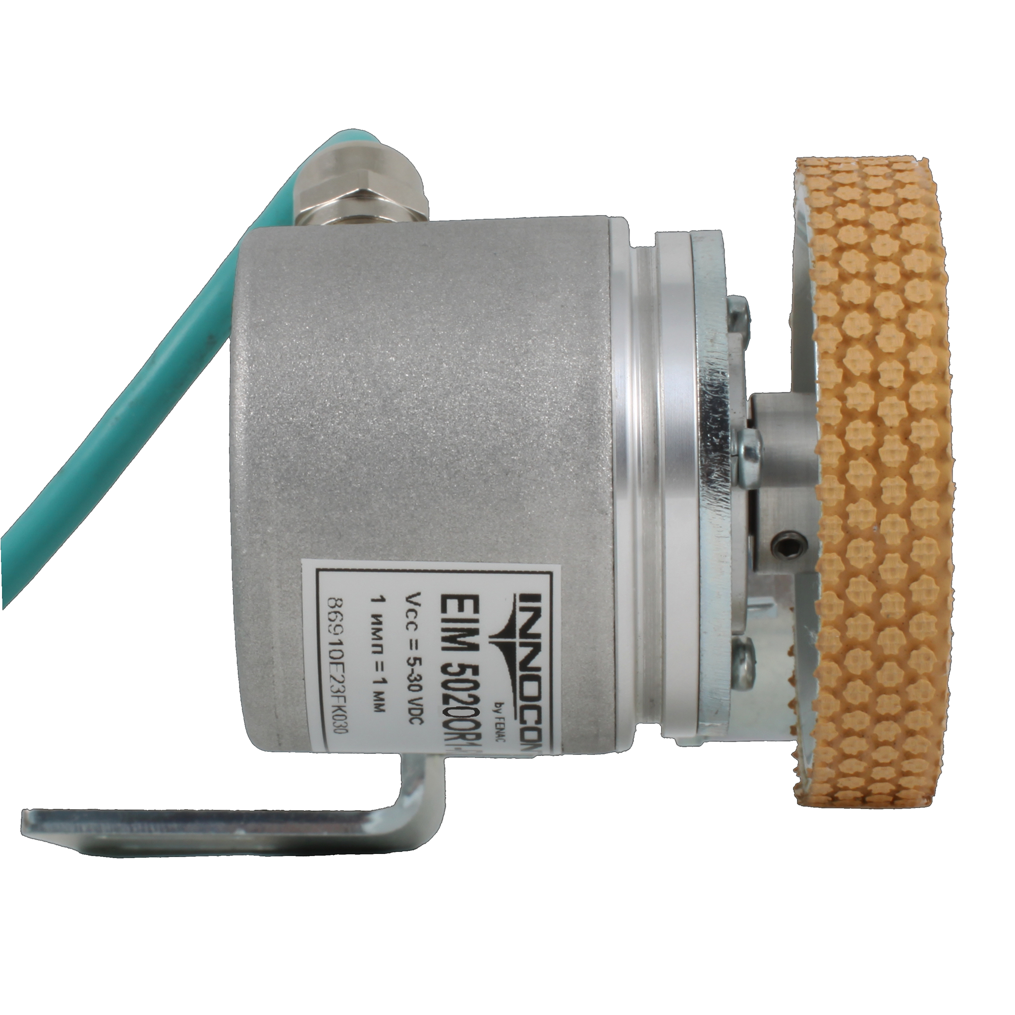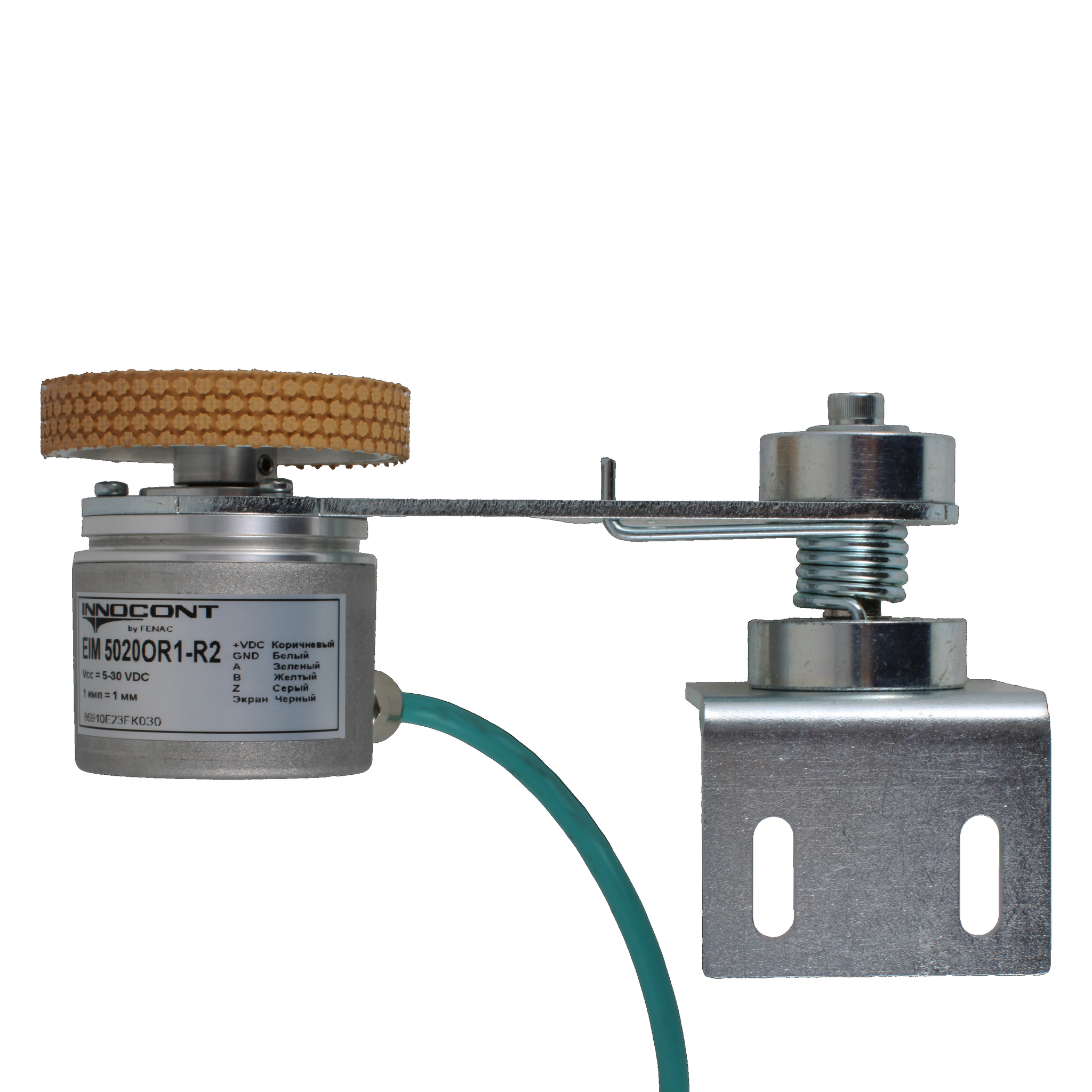Инкрементальный энкодер INNOCONT D=50мм с мерным колесом L=200мм, контактная поверхность — резина, профиль ребристый, 1имп/0,5мм, 5…30VDC, выход HTL, IP64, -20…+85°C, радиальный кабель 2м