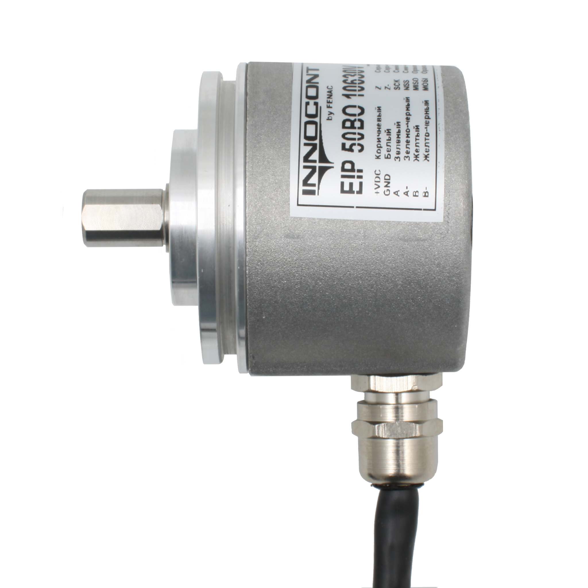 Инкрементальный программируемый энкодер INNOCONT D=50мм, выступающий вал 6мм, 5…30VDC, выход TTL/HTL с инверсией, IP 65