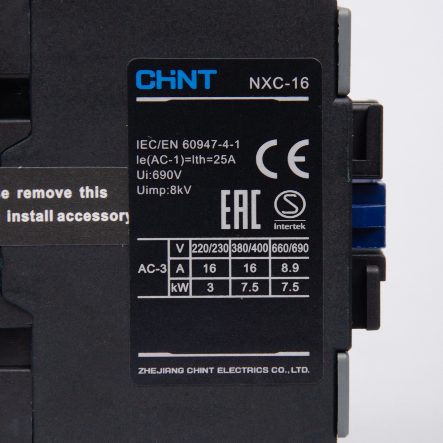 836721 | Контактор NXC-16 3P 16A AC380В (50Гц) 1НО+1НЗ, Chint