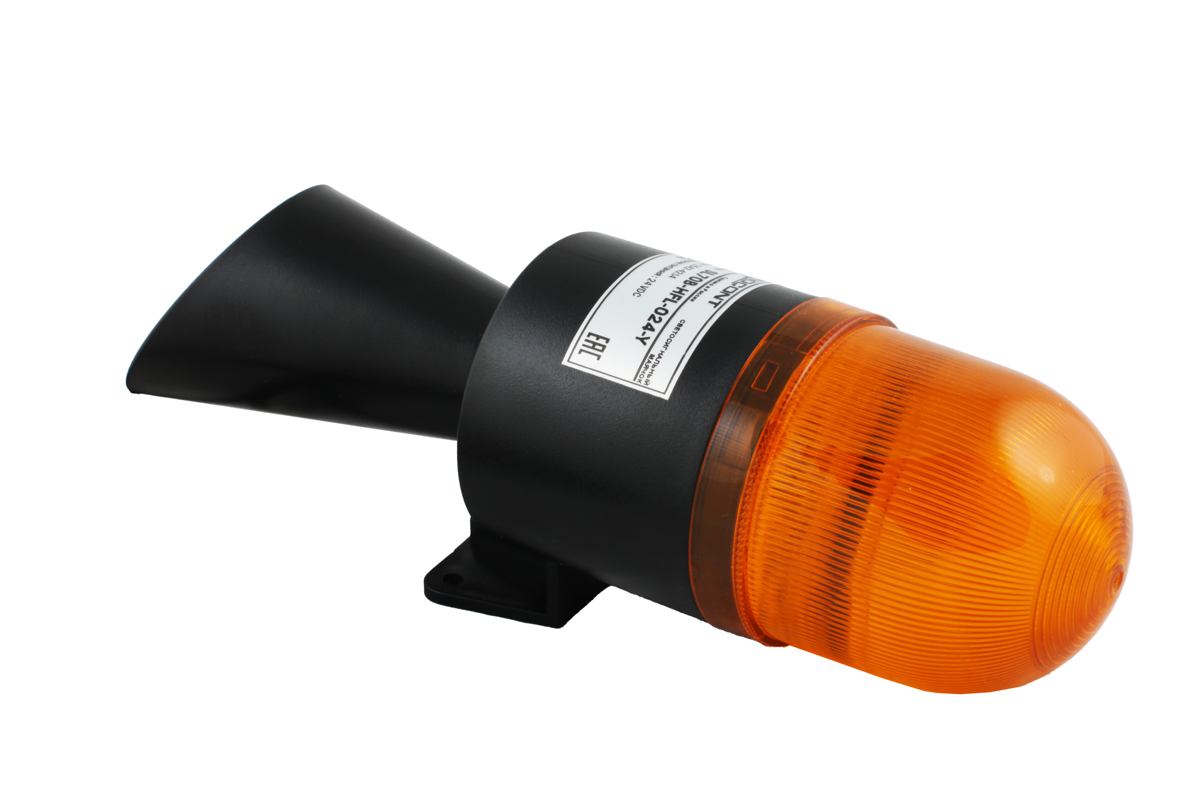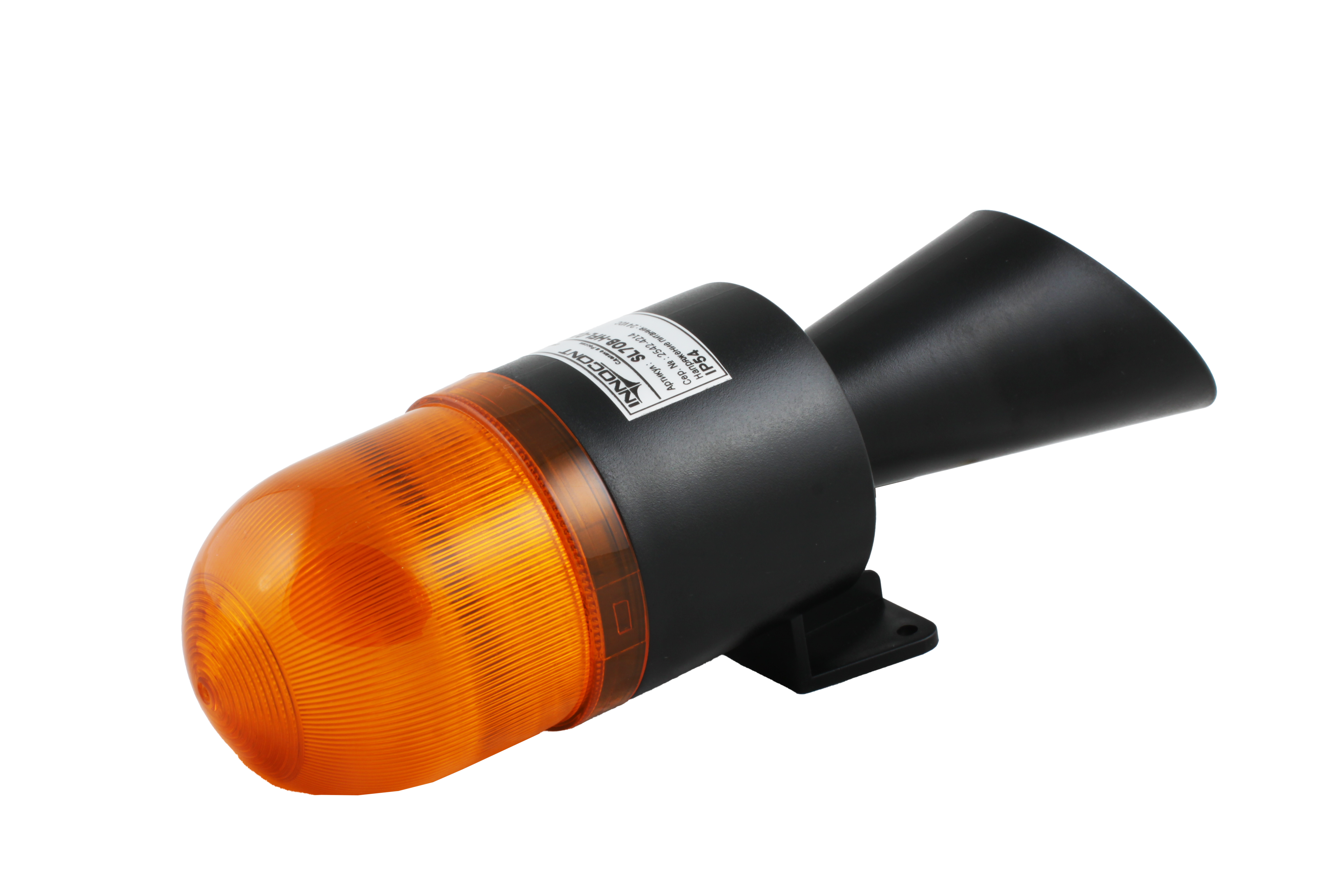 Светосигнальный маячок с усиленным звуком INNOCONT, диаметр основания 70мм, L=245мм, светодиод(мигающее), зуммер 100дБ, цвет: желтый, 24VDC, IP54. кабель 0,7м