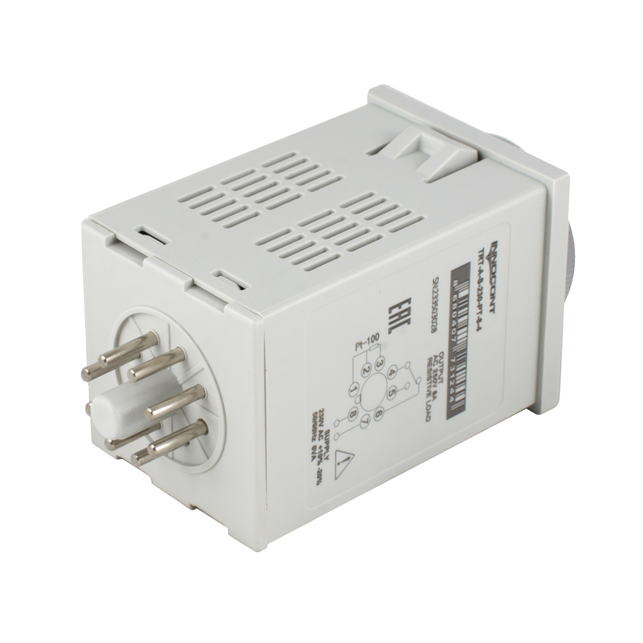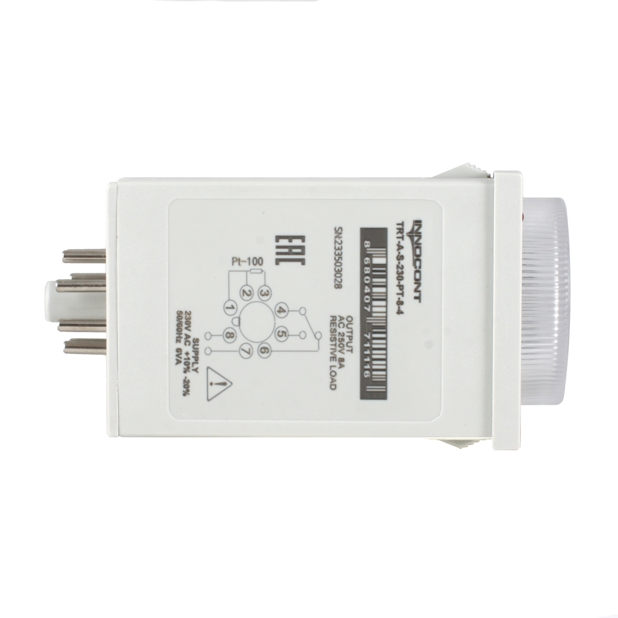 Температурный контроллер INNOCONT с аналоговым управлением, 48х48х82 мм,вход Pt100, 0…400C, выход реле, ON/OFF, 230VAC, электросоединение под розетку 8pin
