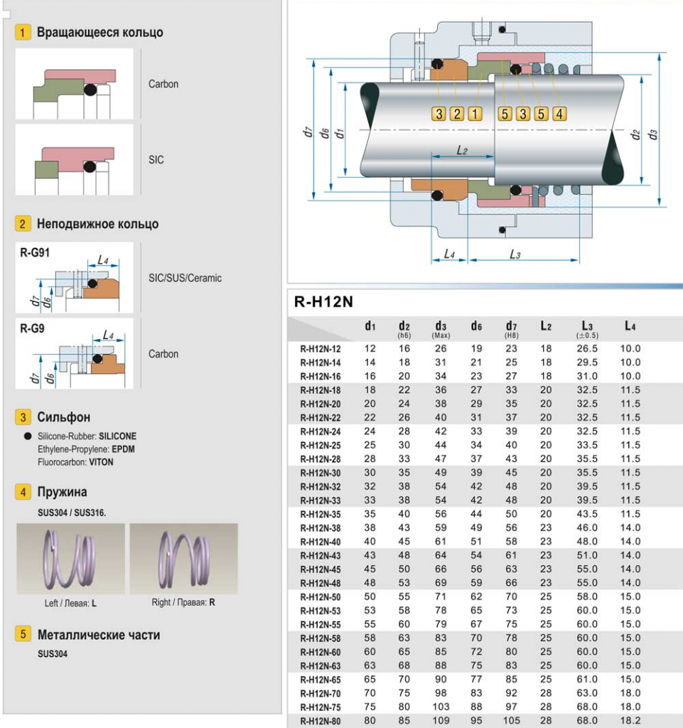 | Неподвижное кольцо | Car/Sic/Cer/TC |